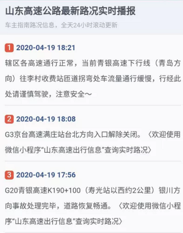 下面推荐用【12122高速路况】官方公众号查询山东高速路况最新情况。
