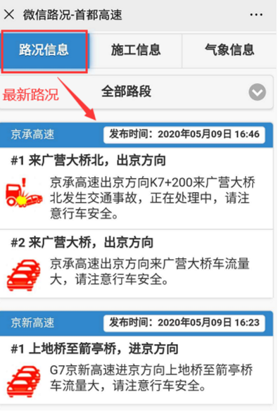 下面推荐用【12122高速路况】官方公众号查询北京高速路况实时播报。